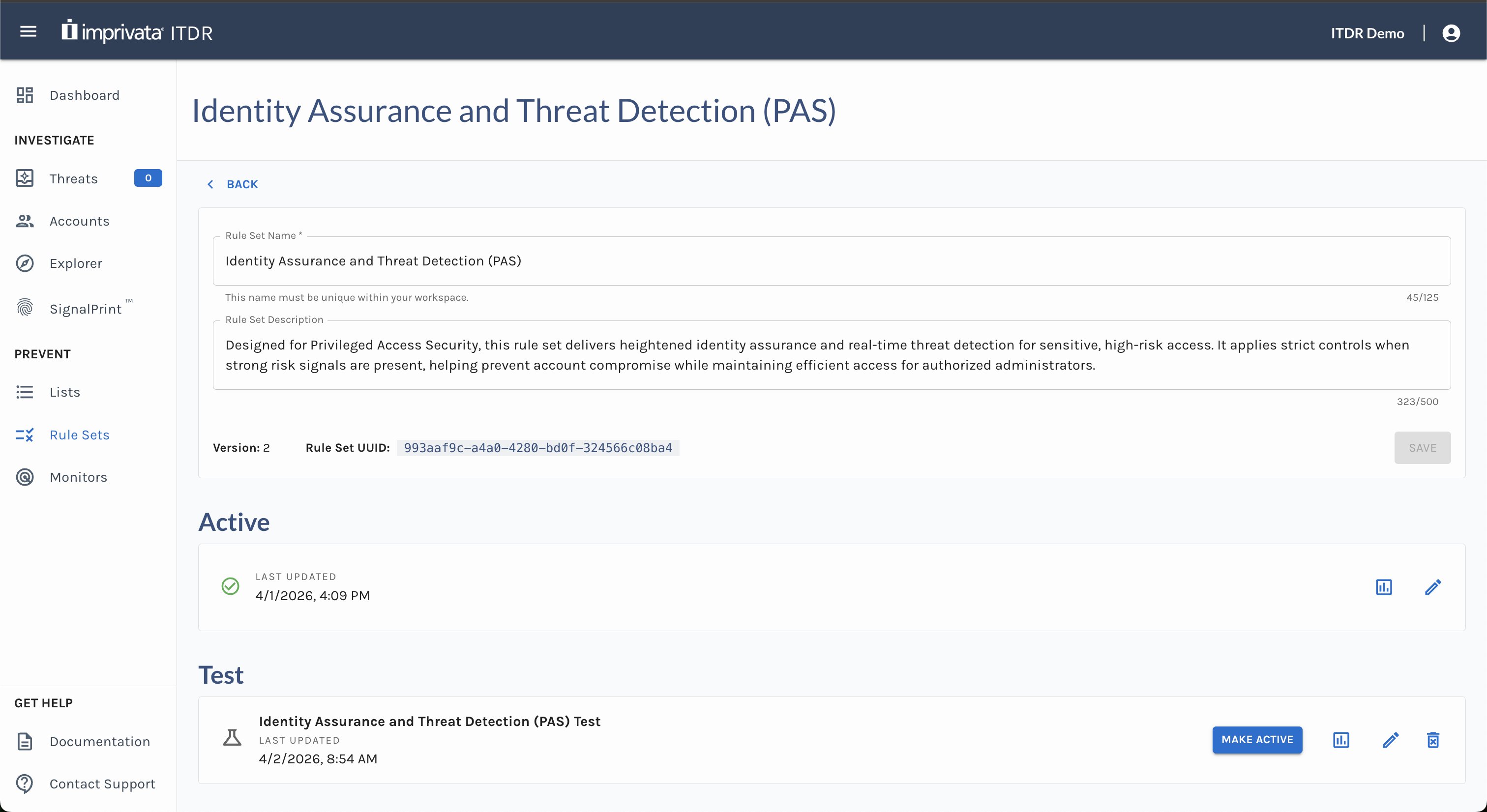 - Creating a test copies the current Active rules of the rule set.